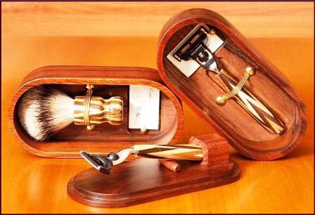Razor handles realized by 18 layers of woods and razor head Gillette Mach 3.